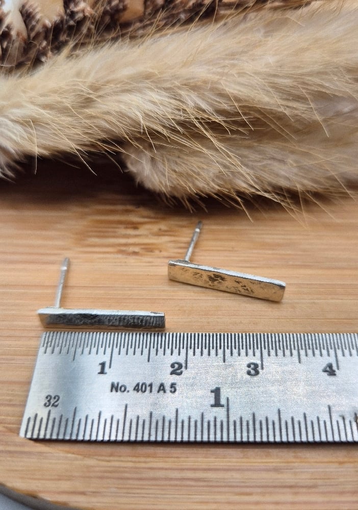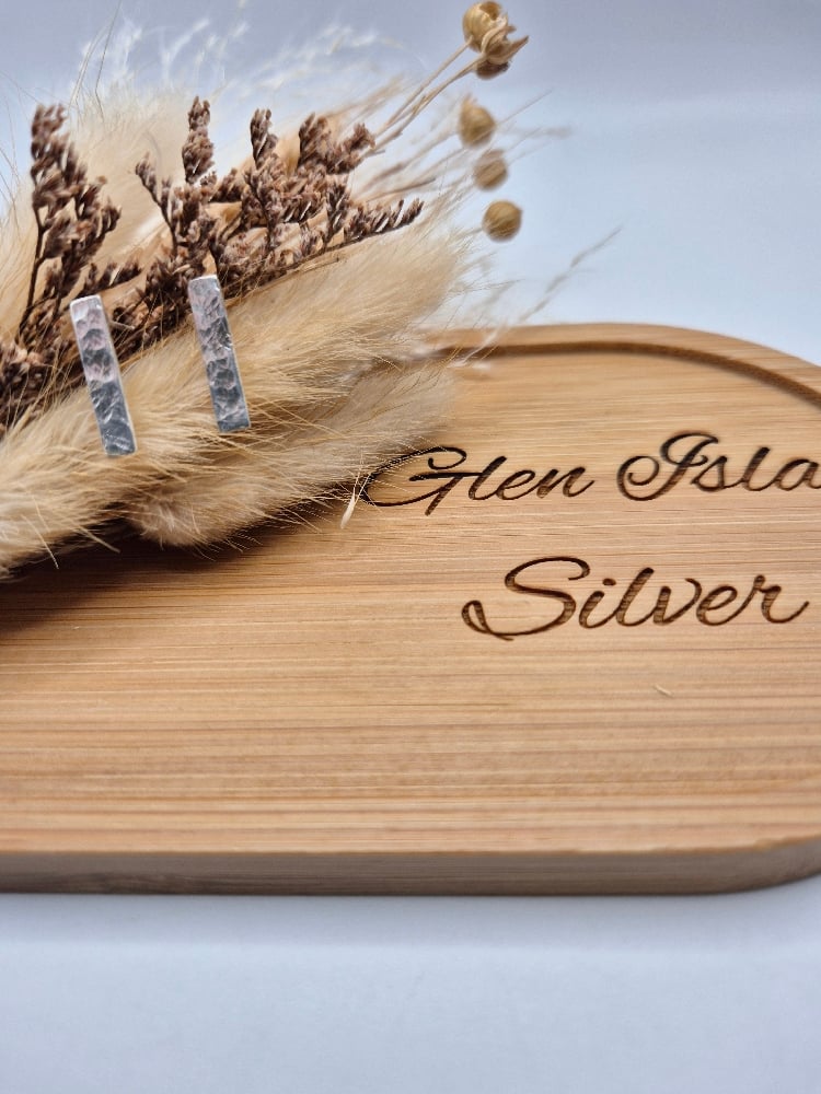 Hammered bar stud earrings handcrafted from recycled sterling silver.