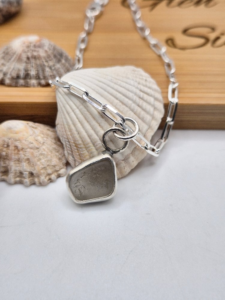 A little piece of North Berwick seaglass, set in a handcrafted recycled sterling silver bezel on a sterling silver paperclip chain bracelet.