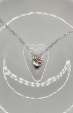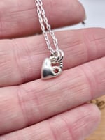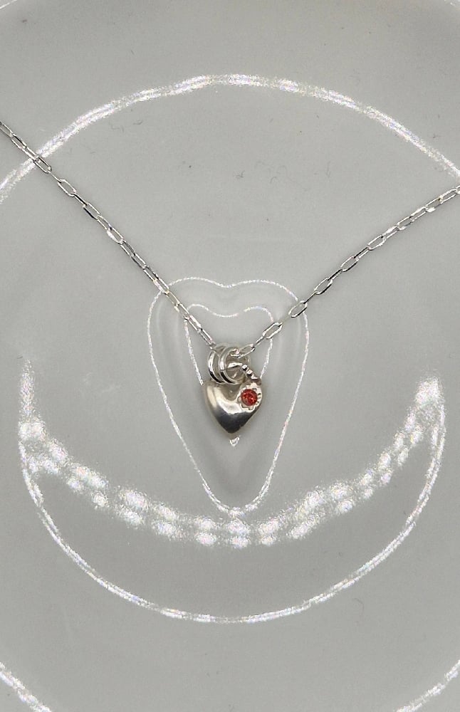 A tiny bubble heart handcrafted from recycled sterling silver with a 2mm cubic zirconia birthstone on an 18" sterling silver chain.