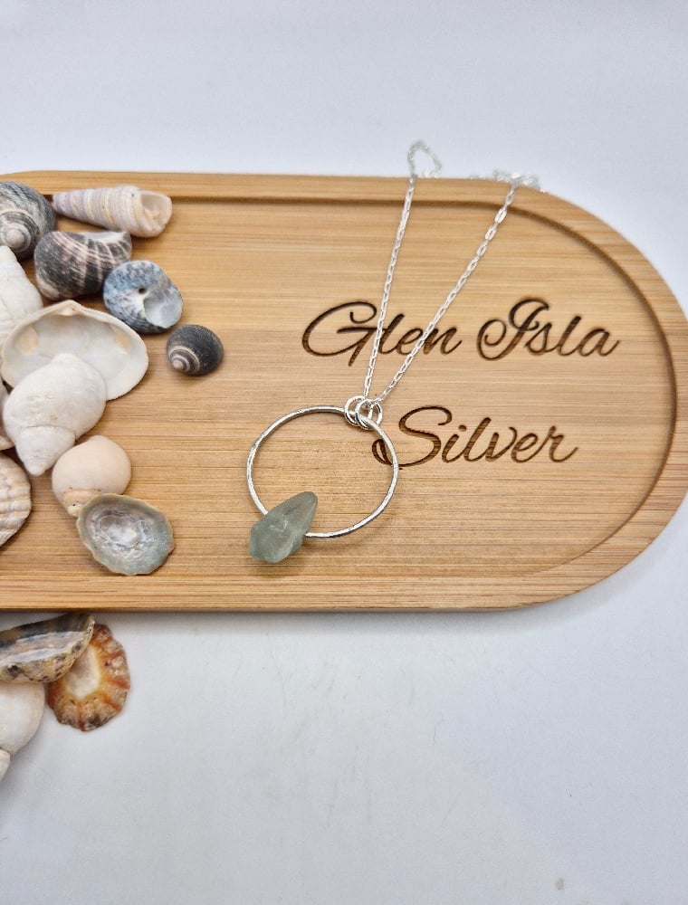 Turquoise seaglass from the beautiful North Berwick coast on a handcrafted recycled sterling silver hammered ring with an 18" sterling silver chain.